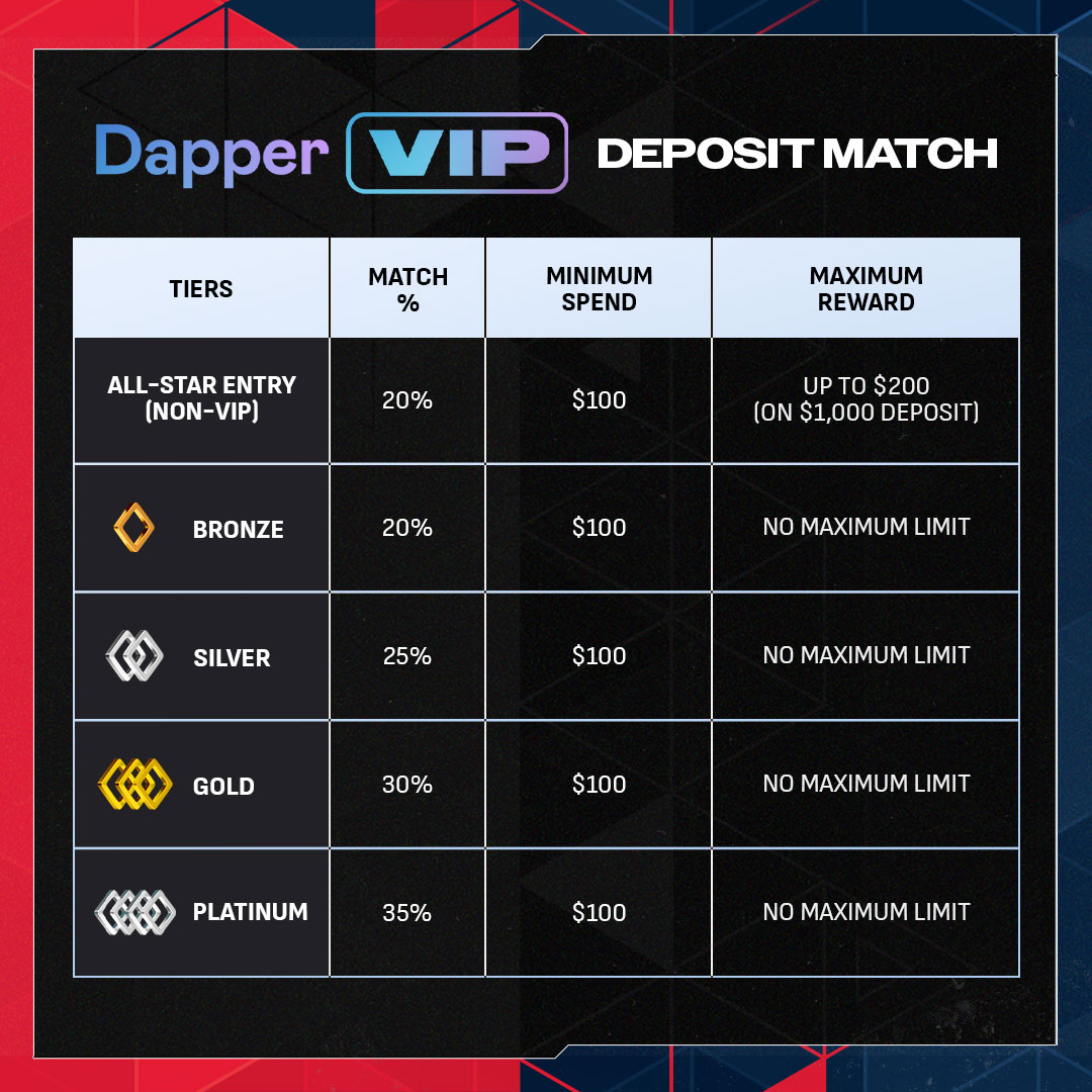 Important: Purchases must be made with funds added to your Dapper Wallet between Feb 9-23. Pre-existing Dapper Balance from before the promotion does not qualify.