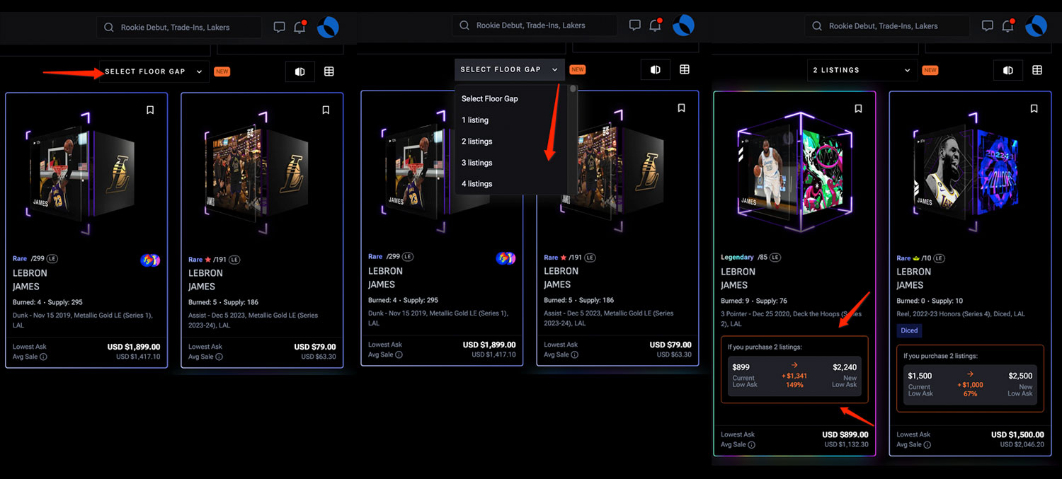 Top Shot LAVA is a Marketplace tool built for collectors who love the hunt. It identifies listings where the gap between the lowest-priced Moment and the next listing is unusually large or “thin”. With LAVA you can spot bargain opportunities instantly of your favorite Moments and control how deep you sweep to move the floor.